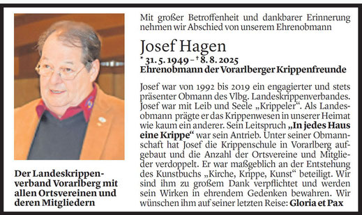 Nachruf zum Download aus der Krippenzeitung November 2025 unseres Ehrenobmannes Josef Hagen